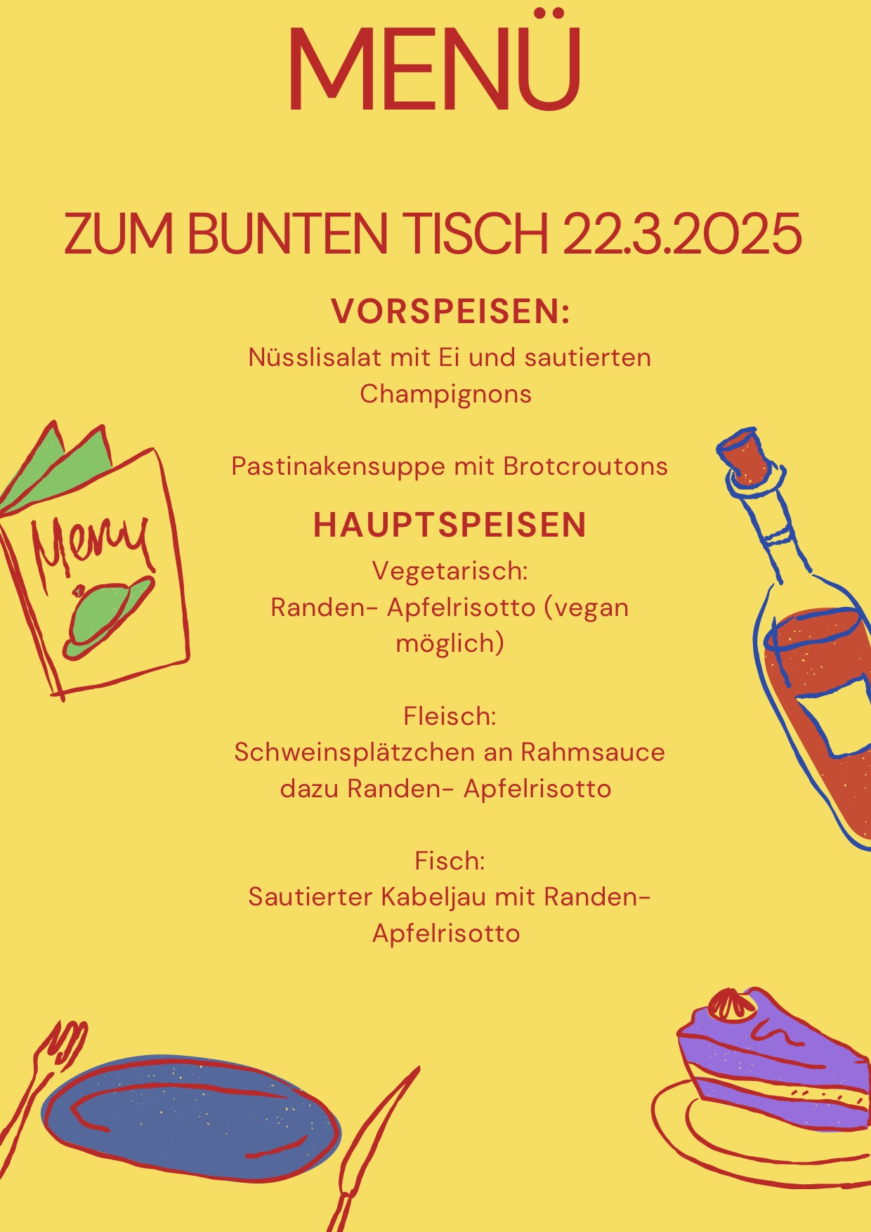 Wir freuen uns sehr unsere Speiseabende im 2025 an den folgenden Daten wieder durchführen zu dürfen: